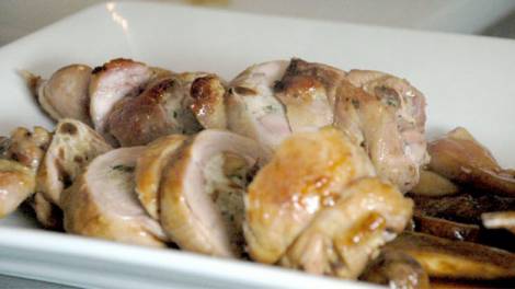 Sauté the sliced porcini mushrooms, add the chopped parsley just before serving. To assemble the plate, plate the mushrooms loosely on the plate with the quail sitting on top. Drizzle with virgin olive oil and some of the pan drippings.