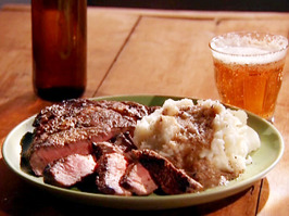 Meanwhile, return skillet to stove, add the shallots and cook until softened, about 1 minute. Stir in the beer and cook until reduced slightly, about 1 minute. Stir in any accumulated meat juices and mustard. Remove the pan from the heat and add the butter. Swirl the pan to melt the butter or use a whisk to incorporate. Season with salt and pepper, to taste, and arrange the steaks on serving plates. Pour the sauce over the steaks and serve immediately.