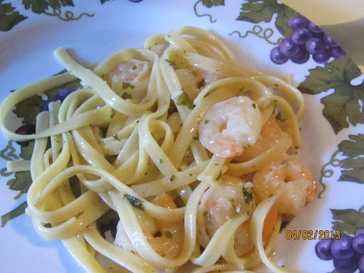 Remove shrimp from pan and set aside, leaing olive oil still in pan. add garlic, pepper flakes, white wine and lemon juice. cook on high heat for one minute.