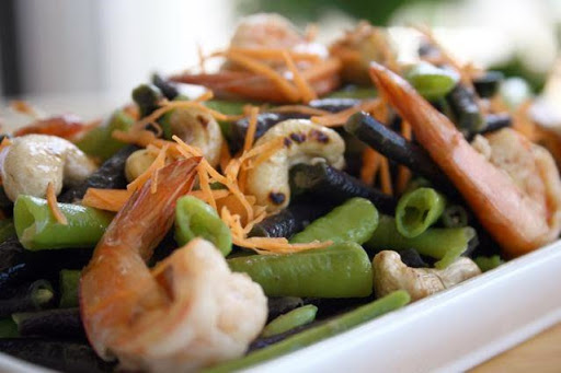 Stir-fried Mixed Colored Long Beans With Prawns & Cashew Nuts