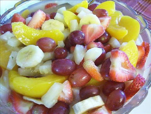 In a large bowl, combine peaches, pineapples, and vanilla pudding mix. This includes the juices from the cans. Mix well until pudding is dissolved. Stir in strawberries, banana, blueberries, grapes, and sugar if desired. Chill.