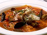 In a large pot, heat olive oil over medium heat. Add the prawns, clams, mussels, fresh fish, red pepper, onion, tomato, garlic, chili flakes, basil, oregano, rosemary, and parsley and cook for 2 minutes. Add the lobster stock and then stir in the tomato puree. Cook until the clams and mussels open and sauce thickens, about 15 to 20 minutes. Season with salt and freshly ground black pepper. To serve, ladle into 2 bowls and garnish with crab.