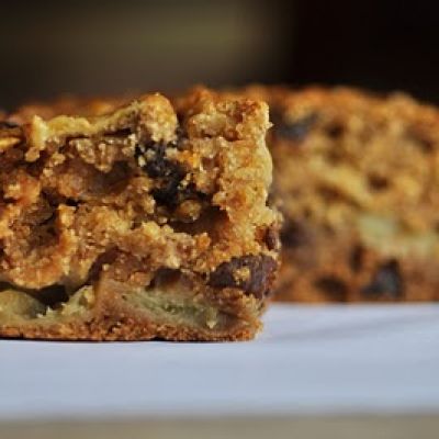 Preheat oven to 355 degrees. Grease a wide loaf pan or line with parchment paper. In a large bowl, pour boiling water over the quick cooking oats. Slice the butter and place on top of the oat water mixture. Let stand for about 10 minutes. In a small bowl, combine the egg and agave syrup. Mix well. Pour over the oat mixture and stir until well combined and butter is fully melted. In another bowl, combine flour, baking soda, cinnamon and salt. Combine wet with dry ingredients and mix well. Stir in the raisins and the apple slices. Pour the batter into the prepared pan. Bake for about 45 minutes or until toothpick comes out clean. Let cool in the pan. Cut into squares to serve.