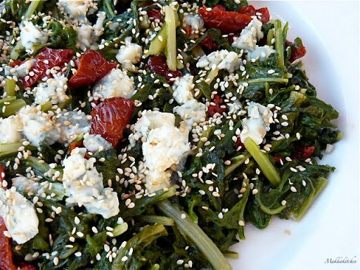 Cook until there’s no liquid. Serve room temperature drizzled with the oil of the sun dried tomato and sprinkled with cheese and sesame seeds.