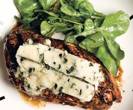- 1 3-to 4-ounce wedge blue cheese, cut into 6 slices