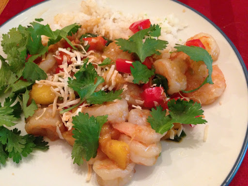3. Sauté onions and next 4 ingredients in remaining 1 Tbsp. hot oil over medium-high heat 1 minute. Stir in mango and next 3 ingredients, and cook 1 minute; stir in shrimp. Serve over hot cooked Coconut-Lime Rice; top with toasted coconut.