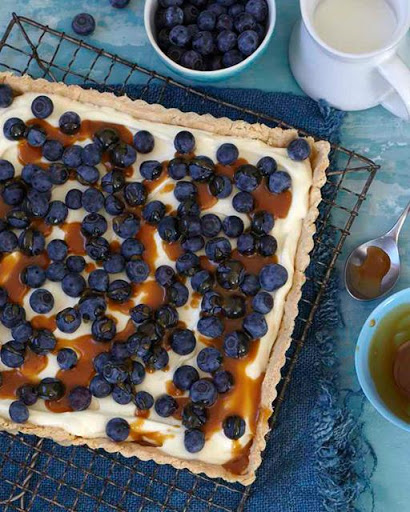 BLUEBERRY TART WITH CARAMEL SAUCE
