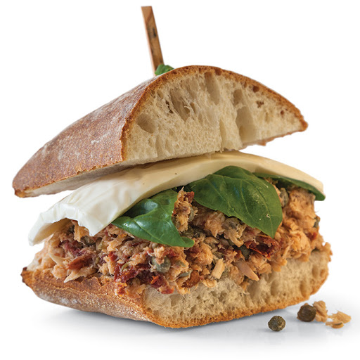 Mixed with capers and sun-dried tomatoes, tuna salad pairs well with classic Italian ingredients in this Tuscan-inspired sandwich served on ciabatta with mozzarella and basil.