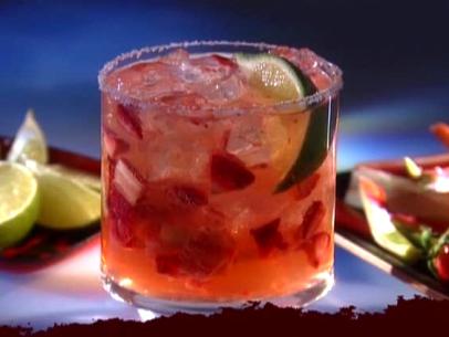 In a cocktail shaker, add the rhubarb and the strawberry, and muddle. Add the tequila, honey, lime juice and some ice and shake. Strain into an ice-filled 12-ounce Collins glass that has been rimmed with salt. Top with the grapefruit soda and a pinch of salt.