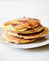 In a large bowl, whisk the corn muffin mix with the buttermilk, egg, ham and scallion just until combined. In a large nonstick skillet, melt 1 tablespoon of the butter. Scoop four 1/4-cup mounds of batter into the skillet and cook, turning once, until golden, about 2 minutes per side. Transfer the flapjacks to serving plates and repeat with the remaining 1 tablespoon of butter and batter. Serve with maple syrup.