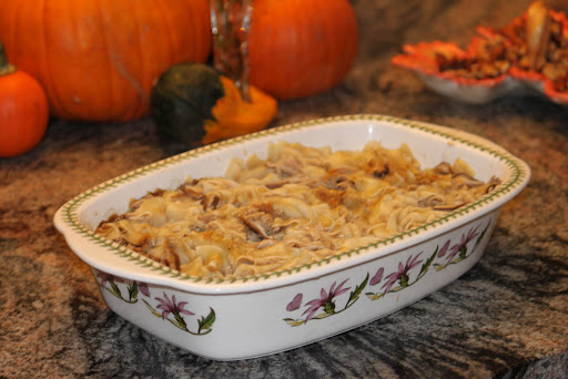 2.Cook egg noodles as directed. Drain and rinse. Place in large microwave safe casserole dish.