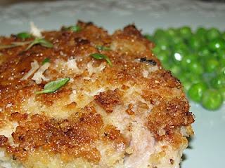 Try this twist on breaded pork chops with asiago cheese and the squeeze of lemon and touch of thyme before serving. Perfect with some roasted asparagus and a side of pasta for dinner.