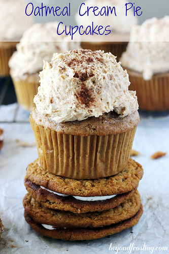 12.Lastly, added the cinnamon and a pinch of salt. Once mixed in, add the Oatmeal Cream Pie Crumbs and beat on low until incorporated.