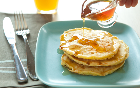 In these moist and tender pancakes, the cottage cheese adds quality calcium and protein. Serve with a bit of butter and maple syrup or, for a special treat, top with fig spread.