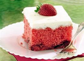 3. Stir 2 teaspoons lime peel into frosting. Spread frosting evenly over cake. Store loosely covered at room temperature. Just before serving, cut each whole strawberry in half, leaving leaves on. Garnish cake with strawberry halves.