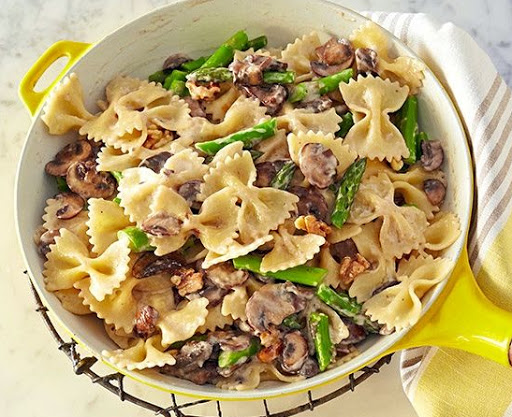 Creamy Farfalle with Cremini, Asparagus & Walnuts