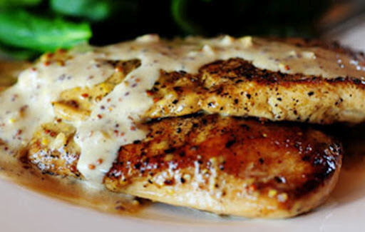 Throw in the mustards and stir to combine, then pour in the cream. Stir in chicken broth, adding more if the sauce seems too thick. Taste sauce and adjust whatever you think it needs. Add chicken breasts back to the pan, nestling them into the sauce. Allow sauce to cook for another few minutes, shaking the pan if needed to move things around.