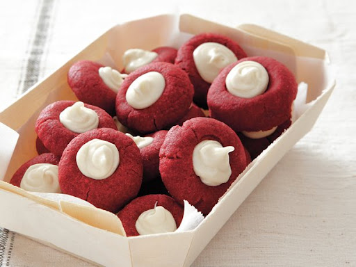 5 In small microwavable bowl, microwave white baking chips uncovered on High 30 to 50 seconds, stirring once, until softened and chips can be stirred smooth. Spoon melted chips into resealable food-storage plastic bag; seal bag. Cut off tiny corner of bag. Twist bag above melted chips. Squeeze bag to fill each thumbprint cookie. Let stand until set.