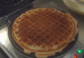 Ladle the recommended amount of waffle batter onto the iron according to the manufacturer's recommendations. Close iron top and cook until the waffle is golden on both sides and is easily removed from iron. Serve immediately or keep warm in a 200 degree F oven until ready to serve.