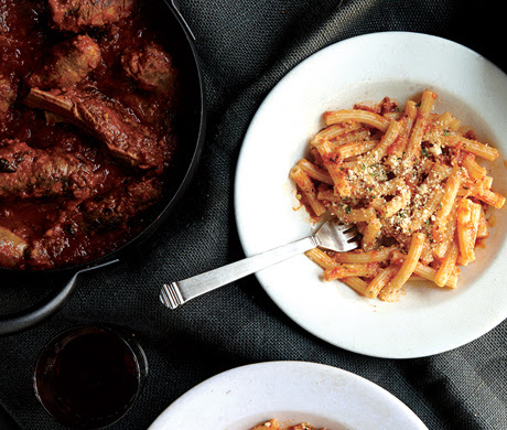 - 1 1/2 pounds large tubular pasta (such as rigatoni or tortiglioni)