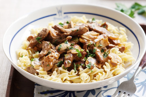 Add sour cream and parsley to steak mixture and cook 1 minute, or until heated through; do not boil. Serve over warm noodles.
