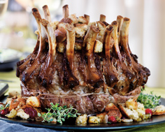 7 If desired for presentation, spoon stuffing into centre of pork roast. Serve remaining stuffing alongside. Cut roast into chops to serve.