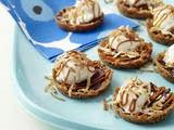 2. Pulse the flour, 1/4 cup coconut, brown sugar and salt in a food processor until combined. Add the cold butter and pulse until the mixture resembles wet sand with pea-sized pieces, about 5 times. Put 1 heaping tablespoon of the mixture in each muffin cup and press to make even rounds. Bake until the crusts are golden, about 20 minutes.