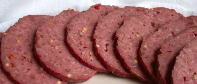This homemade salami recipe makes 4 pounds, enough for 50 people when sliced as a snack. Freezes well for later use.