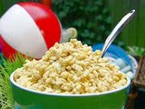 I have made this recipe a few times with great success. Since the first time, where I followed the recipe word for word, I have cut back on the salt(way too salty the first time) and add the mayo a bit at a time until desired consistency. I also prefer dill relish or cut up dill pickles for added crunch. Half batches are usually more than enough for my family of 5 with plenty of leftovers. I have also found that I enjoy the salad more when I make sure it is blended with all of the ingredients super cold (no icky glossy mayo coating) and that it tastes better the next day when all the flavors have time to mix.