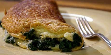 Heat the remaining butter in a large frying pan for the omelette (no-stick will simplify your life). Pour the egg into it and cook until the bottom is set and golden and the top still fluffy and soft, three to five minutes. Scatter the spinach mixture all over the omelette, then the cheese. Cover for a few minutes to soften the cheese. Uncover, gold the omelette in half and slide it onto a plate. Serve