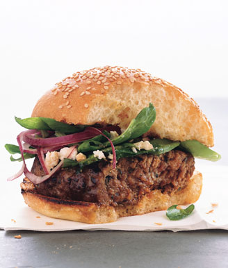 Greek Lamb Burgers with Spinach & Red Onion Salad