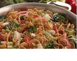 Add garlic, vegetables, basil and cook for 2 minutes. Reduce heat to low, slowly stir in chicken broth and then cream.