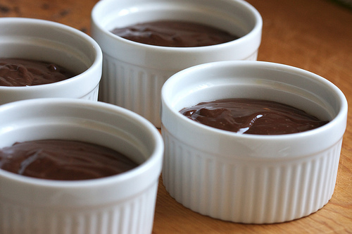 Pour pudding into ramekins or custard cups and cover surface each with wax paper to prevent a skin from forming. Refrigerate, covered, until cool, at least 2 hours.