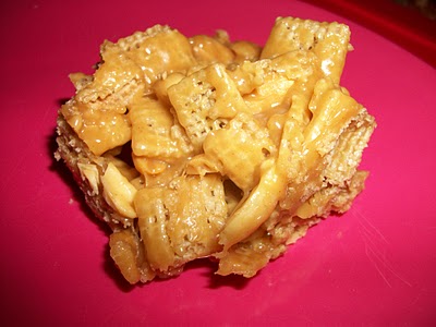 Pour peanut butter mixture over cereal mixture; Stir to coated.