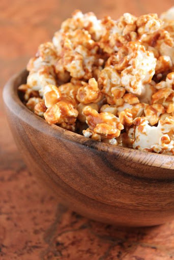 Bake for 15 minutes. Stir the caramel corn, arranging it once again in an even layer. Bake for an additional 15 minutes.