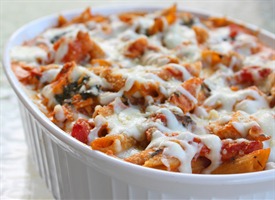 Bake 20 minutes in the oven. Top with remaining 1/2 cup mozzarella and Parmesan cheese. Bake for 2-3 minutes or until cheese is melted.