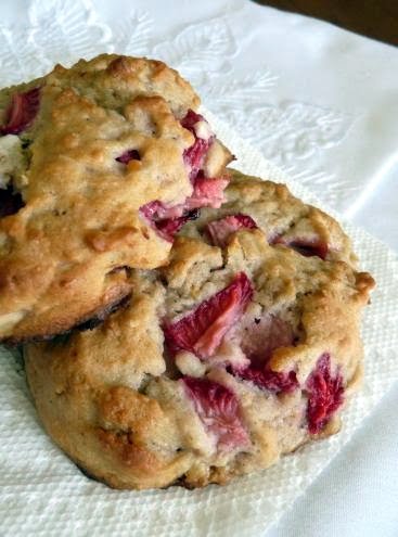 After this, I cut up the strawberries. Then I added the cold butter to the flour/wet mixture in the large bowl, I then kneaded the dough and mixed in the butter (the warmth from your hands will help it melt a bit). Lastly, carefully add the strawberries a few tablespoons at a time, using a fork or spoon to nestle the strawberries into the dough.