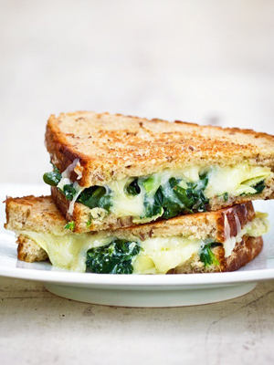 Never mind the sour cream, butter and cheese – this spinach-filled sandwich is definitely a health food...right?