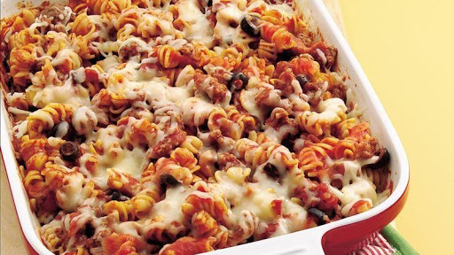 Olives add some color contrast to this casserole, but you can omit them for a more kid-friendly meal. Serve with warm breadsticks and a green salad.