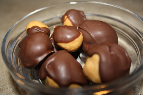 Melt chocolate and coat chilled balls, placing on waxed paper to harden or spread on top of mixture in pan