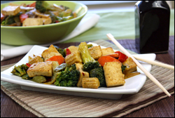 Give the sauce mixture a stir and add to the skillet, along with the tofu. Cook and stir until sauce has thickened slightly and tofu is hot, about 3 minutes. Dig in!