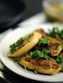 Skär baguetten i tunna skivor. Mura fast färsen med en gaffel.