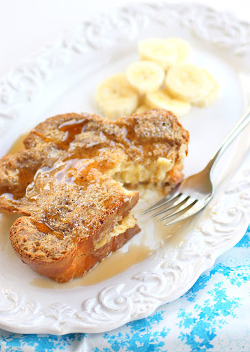 - 1 large unsliced loaf French bread, bread cut into 8 slices that are about 2 inches thick (croissants are also amazing in this recipe)