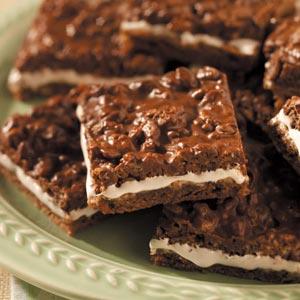 Bake at 350° for 15-18 minutes or until set. Sprinkle with marshmallows; bake 2-3 minutes longer or until melted. Place pan on a wire rack. Using a knife dipped in water, spread marshmallows evenly over the top. Cool completely.