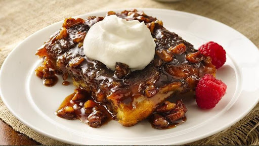 2 In 2-quart saucepan, mix 3/4 cup brown sugar, 1/4 cup granulated sugar, 1/2 cup butter, the maple syrup and espresso. Cook 4 to 6 minutes over medium heat until sugars dissolve and mixture is smooth. Pour into baking dish. Sprinkle with 1/2 cup pecans. Top with 10 slices French bread, cutting slices in half if necessary to fit in baking dish in single layer.