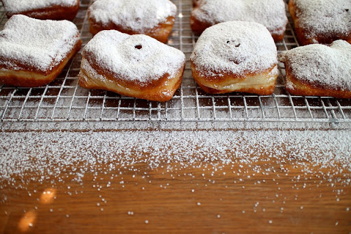 Invite some friends over. Gather around a hot pot of oil, take out an extra pair of frying tongs. Measure out as much powdered sugar as you think you’ll need for a fresh batch of beignets, then double it…. then pour some powdered sugar over your head (just for good measure). We’re all the way in. Let’s do this!