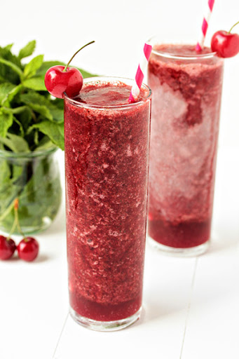 1. Place the frozen cherries, ice, mint, rum, and lime simple syrup in a blender. Blend until smooth.