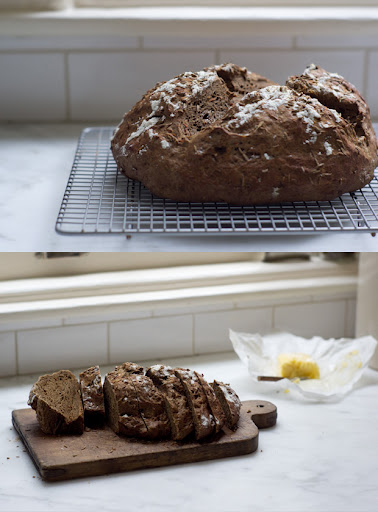 This recipe calls for carrots, which add nice flecks of color, but you can do a potato version as well. Also, I use molasses here, but a lot of you (particularly outside the U.S.) tend to ask me for alternatives - black treacle, or honey will also work. Honey will give you a lighter bread though. For those of you skittish about yeast doughs, I tend to let my dough rise on top of my stove when then oven is on, but a sunny spot usually works nicely too.