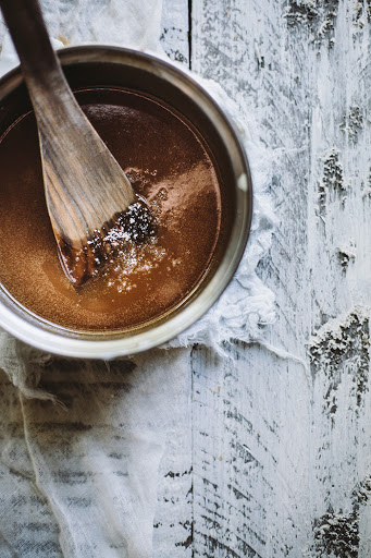 When the caramel smoothes out, allow the mixture to simmer for 3-5 minutes more so that it thickens slightly. Remove from the stovetop and stir in the vanilla extract and the salt. Set aside and allow to cool to room temperature. Use immediately, or keep in an airtight container in the refrigerator for up to 1 week. If refrigerated, the caramel will solidify slightly, simply heat it up a bit to get it back to drizzling consistency.