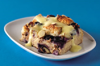 COMBINE bread and blueberries in 13x9-inch baking dish sprayed with cooking spray.